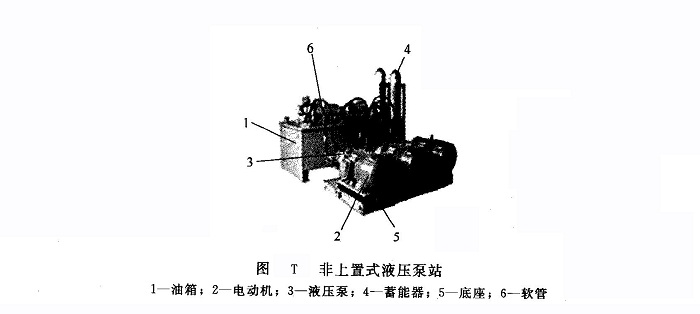 ④如安裝空間允許,則應(yīng)考慮采用非上置式液壓泵站,并將泵組與油箱分開放置(圖T),以隔離泵組振動(dòng)對(duì)油箱的影響。