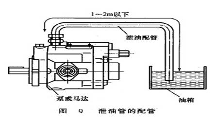 泵的吸、壓油口和泄油口的配管通徑應(yīng)等于或大于產(chǎn)品規(guī)定值。為了避免鋼管裝配不妥,使泵產(chǎn)生強(qiáng)制偏移而引起軸伸上受徑向力及噪聲傳遞,應(yīng)接一段軟管。為了避免空氣吸入,吸油管應(yīng)插入液面以下,推薦插入液面深度為離最低液面(3~4)d(d為管道通徑);油管口離油箱底面150mm以上。管端切45°斜口。對(duì)允許安裝在油箱上的自吸泵,通常泵軸線離液面不大于500mm。即使泵安裝位置低于油箱液面,其管道也應(yīng)盡可能短,盡量不接直角彎頭。避免安裝截止閥,以免因操縱失誤而使泵吸空,并推薦采用箱側(cè)吸油過(guò)濾器,因其帶有自封閥,對(duì)更換濾芯及維修泵均無(wú)影響。泄油管的長(zhǎng)度應(yīng)盡量短,若超過(guò)1~2m,應(yīng)增大通徑,以保證殼體內(nèi)壓力不超過(guò)0.03MPa,以免軸頭密封損壞。泄油管應(yīng)單獨(dú)直接回油箱,遠(yuǎn)離吸油管,插入液面以下。不得與系統(tǒng)回油管合用。對(duì)于配有幾個(gè)泄油口的泵或馬達(dá),應(yīng)選最高位置的接口配管,如圖Q所示,配管的部分高度應(yīng)高于泵體最高部位的高度。泵逆向使用即作馬達(dá)時(shí),其回油管應(yīng)遠(yuǎn)離吸油管,插入液面以下,管端切45。斜口,且斜口朝向油箱壁。