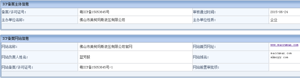 備案信息查詢結(jié)果