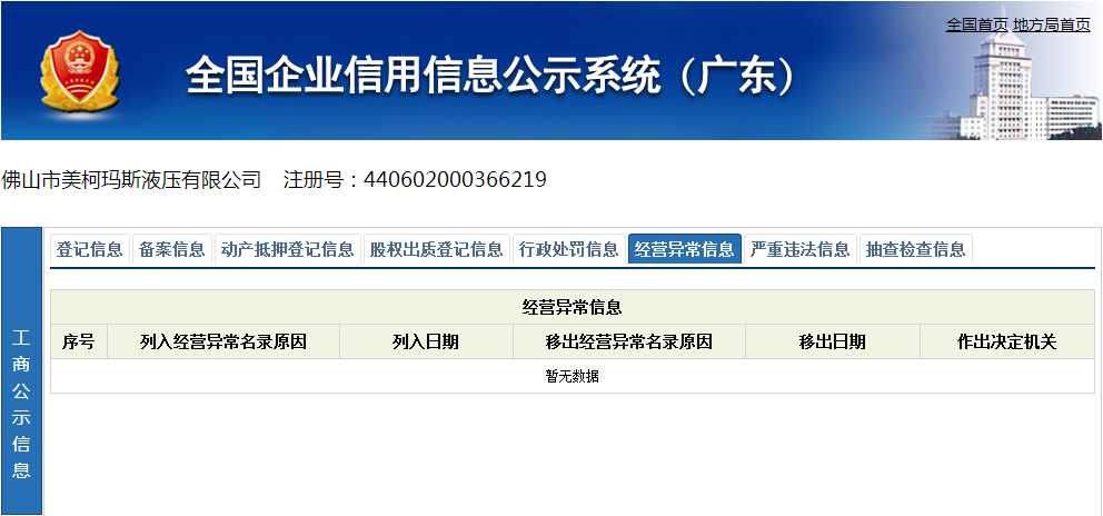 異常公司查詢結(jié)果