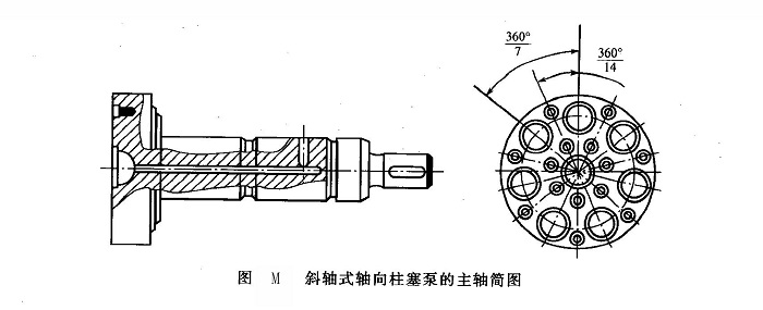 ③缸體斜軸泵的傳動(dòng)主軸不穿過缸體,其缸體直徑較直軸泵小,加上側(cè)向力對(duì)缸體的傾翻作用小,故配流副的工況比直軸泵好些,許用轉(zhuǎn)速也高一些。
