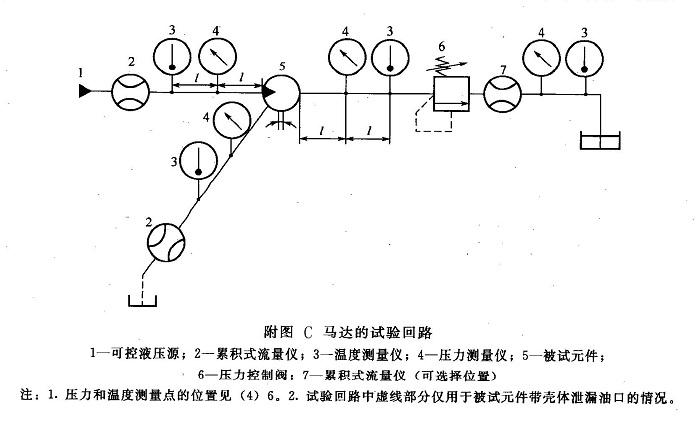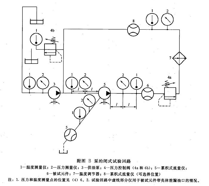 c. 如果測試的是雙向泵,應對附圖A和附圖B所示的試驗回路作適當修改,因為附圖A和附圖B所示的試驗回路僅適用于單向泵的試驗。