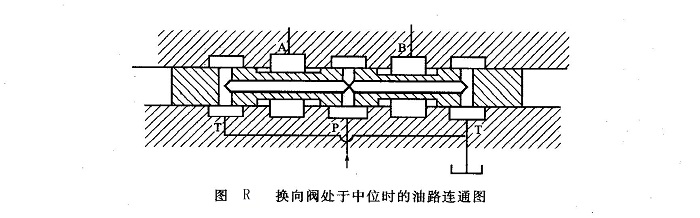 該閥是一個具有M型滑閥機能的三位四通電磁換向閥,中位時油路的連通狀況如圖R所示。